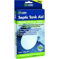 Septic tank aid prevents septic systems from clogging by rapidly degrading accumulated bottom sludge and scum layers inside your septic tank. Active enzymes rapidly break down organic waste and odor-causing compounds. Suitable for all septic systems. For general preventative maintenance use every 3 months to extend pump-out intervals. Or use as a booster for heavy loads or after long periods of inactivity. 100% organic and biodegradable. 3.5 oz. packet in a box. No. B00070: Size: 3.5 oz Packet, Usage: Once Every 3 MonthsRead more BiOWISH Septic Tank Treatment